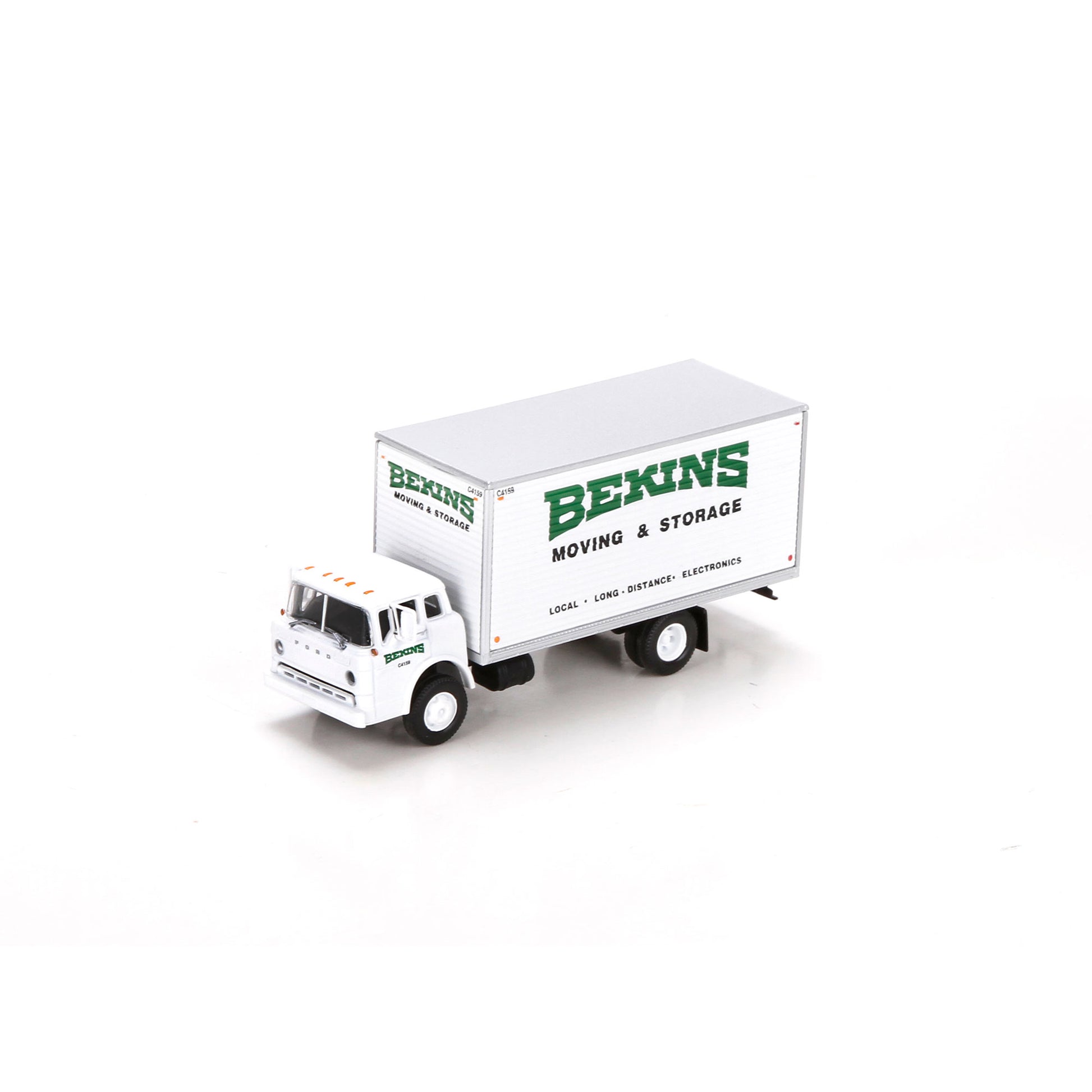 This is an Athearn 27640 HO Scale Bekins Ford C Box Van. Model Features: Clear window glazing,Completely assembled,Interior with separate steering wheel,Rubber tires,Many separately applied details.