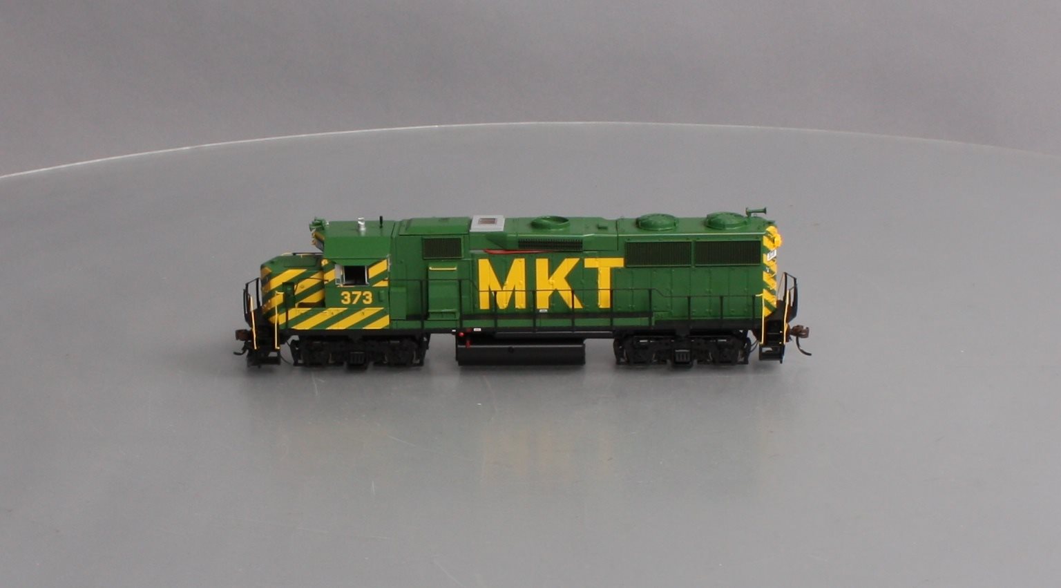 This is an Athearn G64620 HO Missouri-Kansas-Texas GP39-2 Phase III Diesel Locomotive with DCC and Sound #373. Features: Fully-assembled and ready-to-run. DCC-ready features Quick Plug plug-and-play technology with both 8- and 9-pin connector. Scaled from prototype resources including drawings, field measurements, photographs, and more. Accurately-painted and printed paint schemes. Coupler cut levers. MU hoses. Trainline hose. See through cab windows. Full cab interior. Walkway tread. Fine-scale Celcon handrails for scale appearance. Windshield wipers. Lift rings. Wire grab irons. Detailed fuel tank with fuel fillers, fuel gauges, & breather pipes. Sander lines. McHenry scale knuckle couplers - Kadee compatible. Genesis driveline with 5-pole skew wound motor, precision machined flywheels, and multi-link drivetrain. All-wheel drive with precision gears for smooth & quiet operation. All-wheel electrical pickup provides reliable current flow. Wheels with RP25 contours operate on all popular brands of track. Incandescent bulbs for realistic appearance. Heavy die-cast frame for greater traction and more pulling power. Packaging securely holds for the model for safe storage. SOUND EQUIPPED MODELS ALSO FEATURE: Onboard DCC decoder with SoundTraxx Tsunami2 sound. Sound units operate in both DC and DCC. Full DCC functions available when operated in DCC mode. Engine, horn, and bell sounds work in DC. All functions NMRA compatible in DCC mode. Excellent Slow speed control. Operating lighting functions with F5 and/or F6 (Flashing ditch lights, beacon, etc). Program a multiple unit (MU) lashup with lead unit only horn, bell, and lights. Many functions can be altered via Configuration Value (CV) changes. CV chart included.