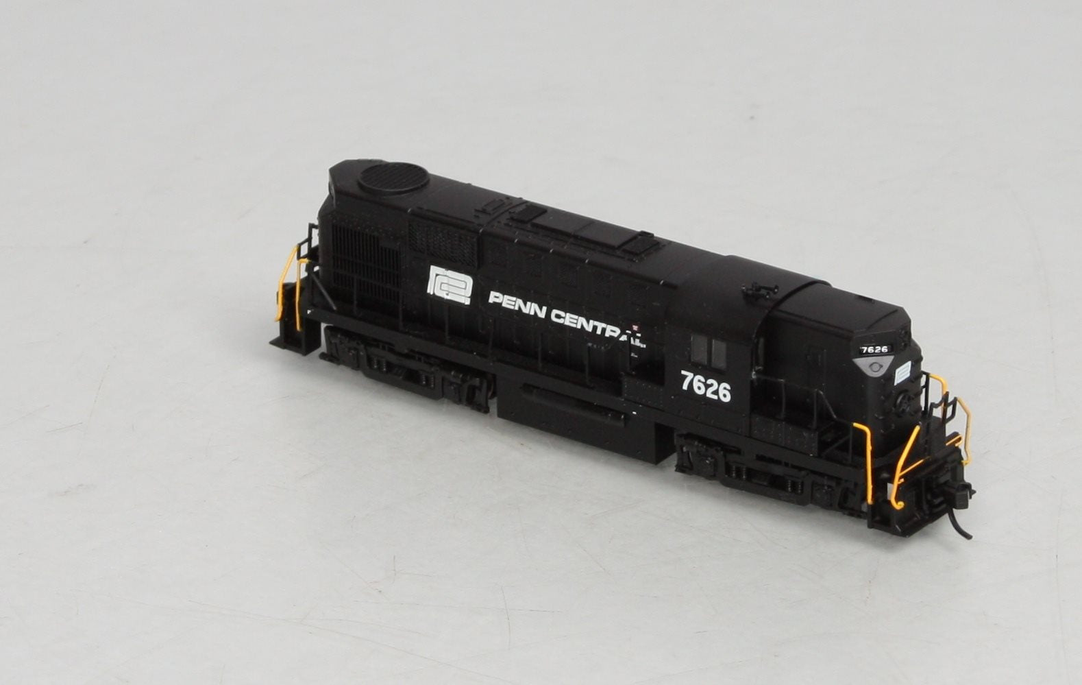 This is Atlas 42668 N Scale Penn Central RS-11 Diesel Locomotive #7626. Features: •Full pilots •AccuMate couplers •Golden-white LEDs •Separate handrails and side sill •Correct wheelbase. Additional Information: The first RS-11s were produced by Alco in early 1956. This locomotive, classified by Alco as model DL-701, was their replacement for the very popular RS-3 road-switcher. Featuring a V-12, 1,800hp 251B diesel engine, the RS-11 was Alco's answer to EMD's very successful GP9. The turbocharged RS-11 accelerated faster, had a higher tractive effort rating and typically used less fuel than the competition. It was also quite versatile and could be found in heavy haul freight as well as passenger service. The largest owner of RS-11s was Norfolk & Western which purchased a total of 99 units (an additional 35 were added to the fleet after the merger with Nickel Plate). Other major purchasers included Northern Pacific, Pennsylvania and Southern Pacific, all of whom placed repeat orders. With approximately 426 units built for the US and Mexico over 8 years of production, the RS-11 was successful for Alco in that it provided ongoing competition for EMD's popular road-switchers. A few examples of this model are still in service today and can be found working for various shortlines in the US.
