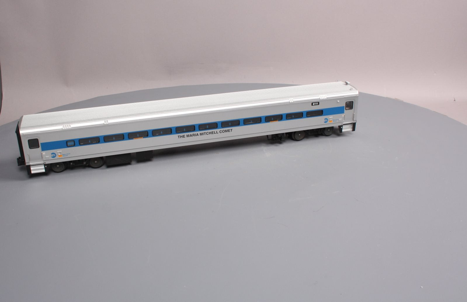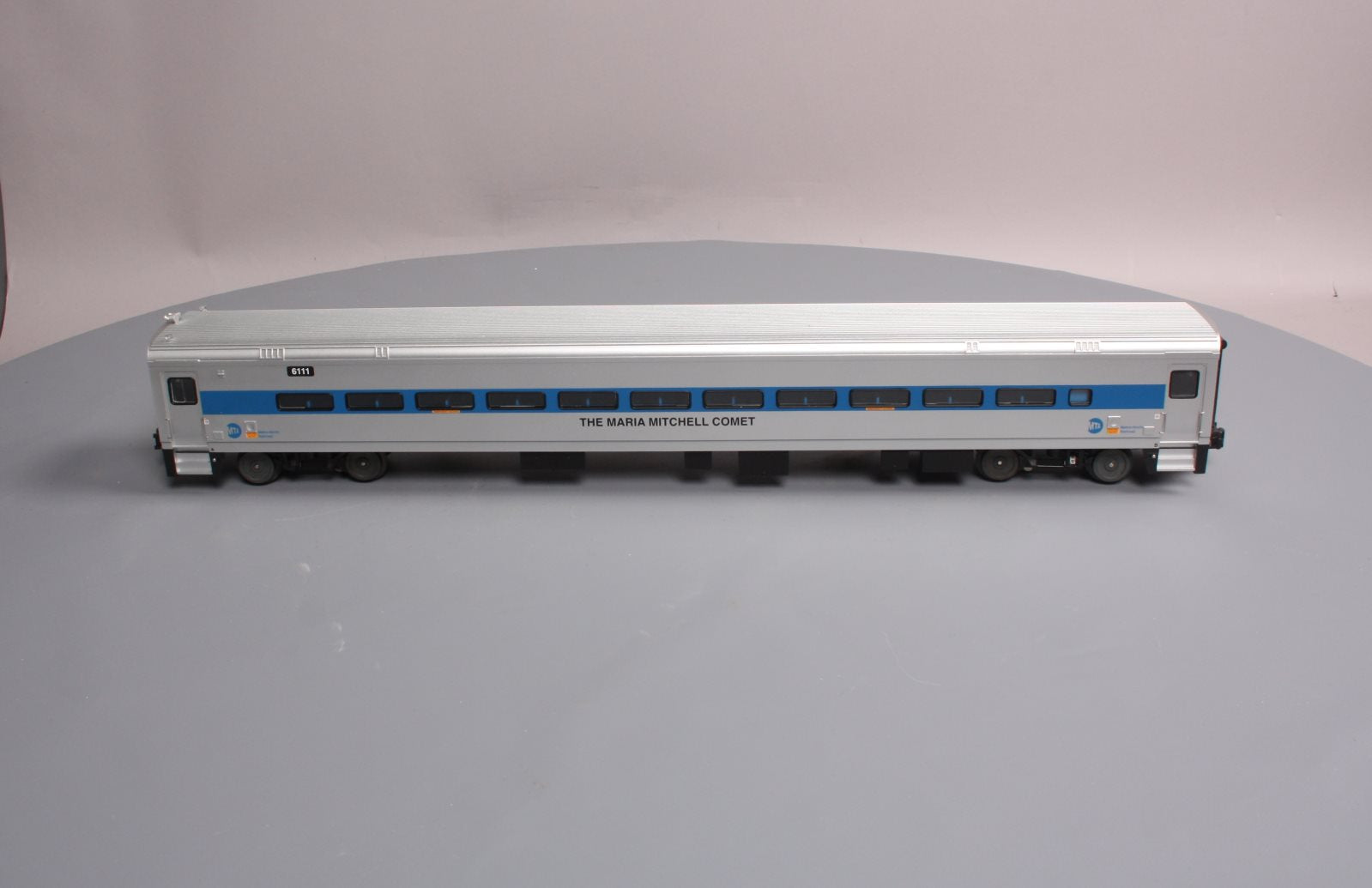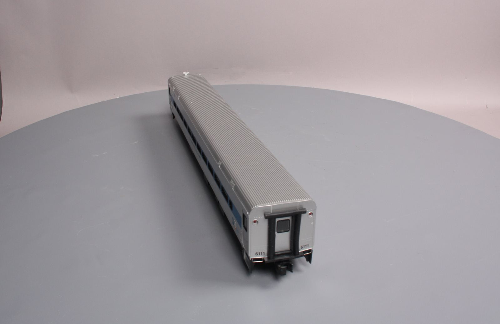 Here is a Metro North Railway Comet II passenger coach that features interior seat detaila dn illumination, operating taillights, detailed plastic shell, die-cast metal trucks and operating knuckle couplers and metal wheels and axles. It measures approximately 21" long. Road number 6111. It runs on 3-Rail track.