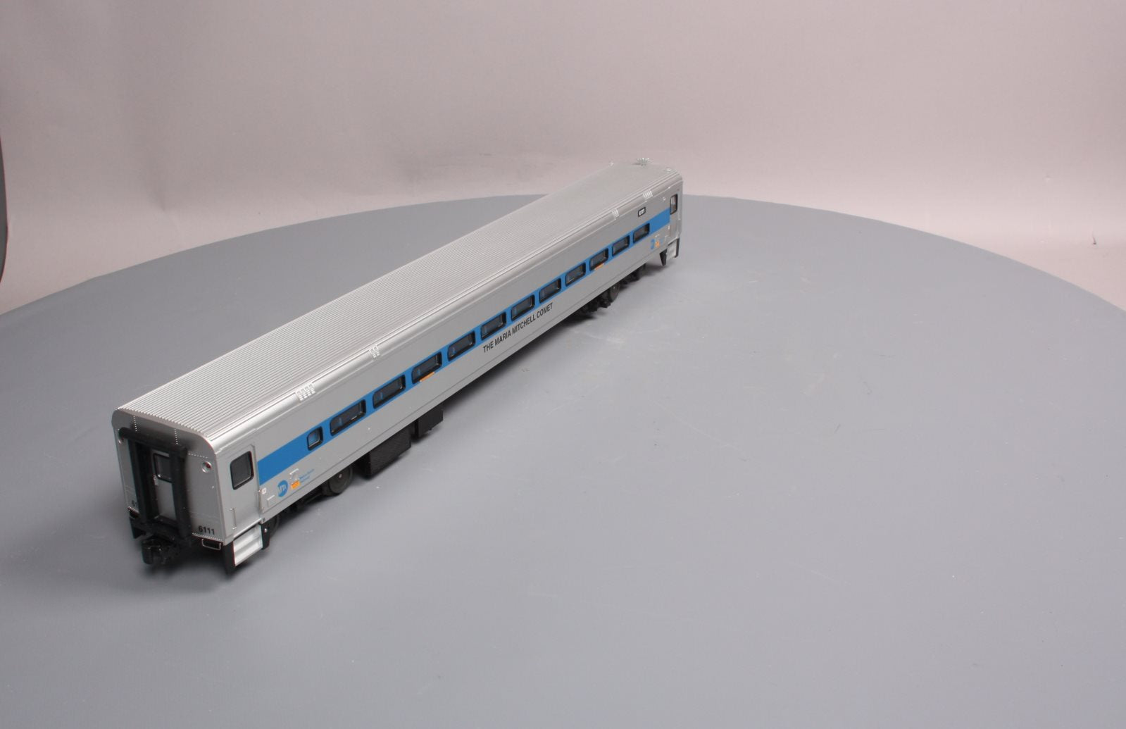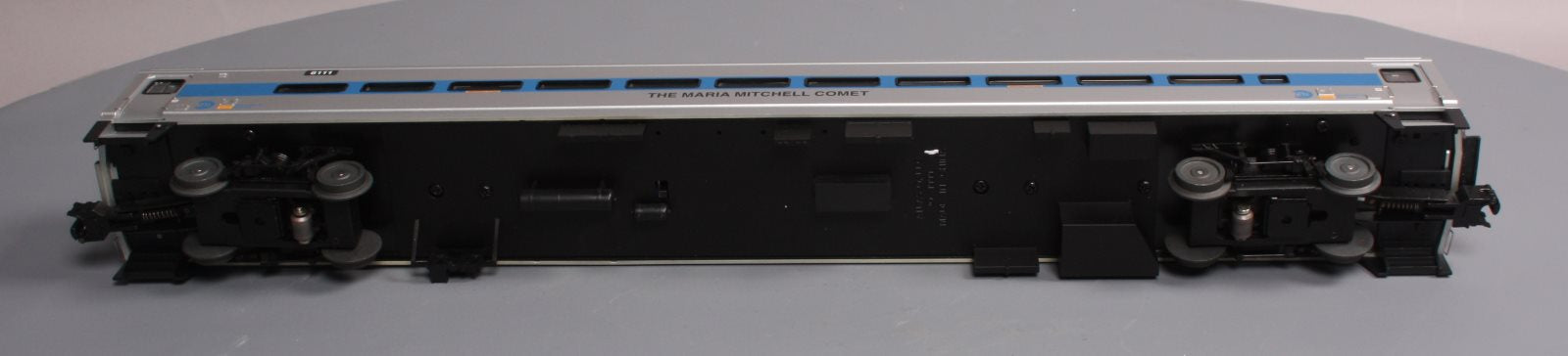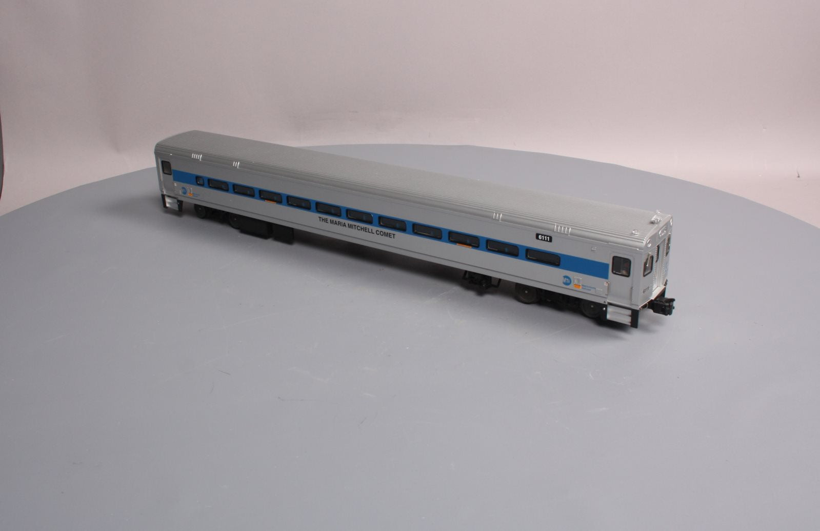 Here is a Metro North Railway Comet II passenger coach that features interior seat detaila dn illumination, operating taillights, detailed plastic shell, die-cast metal trucks and operating knuckle couplers and metal wheels and axles. It measures approximately 21" long. Road number 6111. It runs on 3-Rail track.