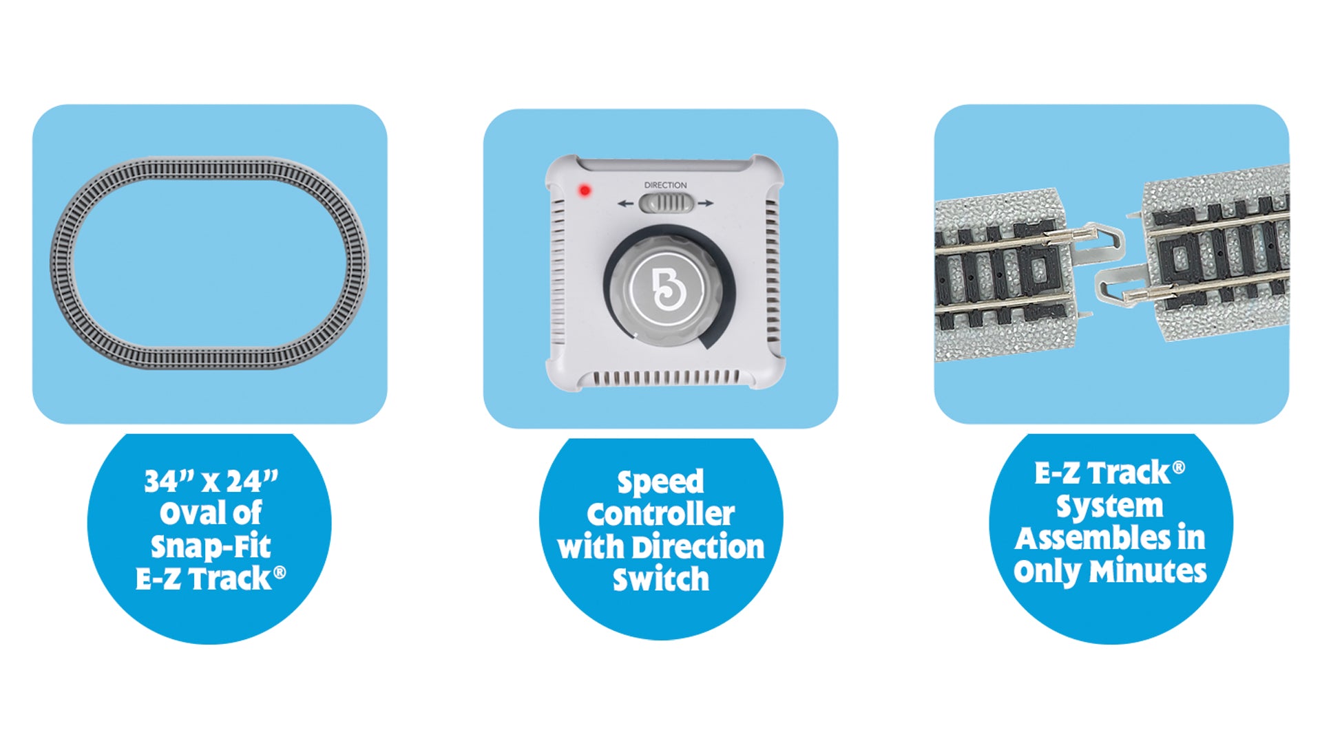 This is a Bachmann 24031 Thomas & Friends Emily N Gauge Steam Passenger Train Set. Features: Emily locomotive with coal tender. Emily's Coach with Rapido-style couplers. Emily's Brake Coach with Rapido-style couplers. 34"" x 24"" oval of snap-fit nickel silver E-Z Track?, including 11 pieces of curved track, 4 pieces of straight track, and 1 plug-in terminal rerailer power pack and speed controller. illustrated instruction manual.