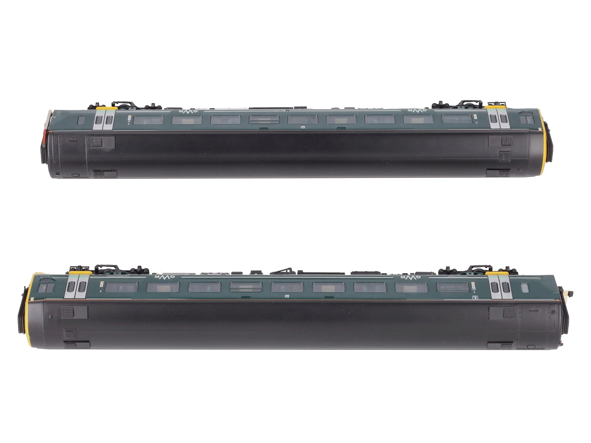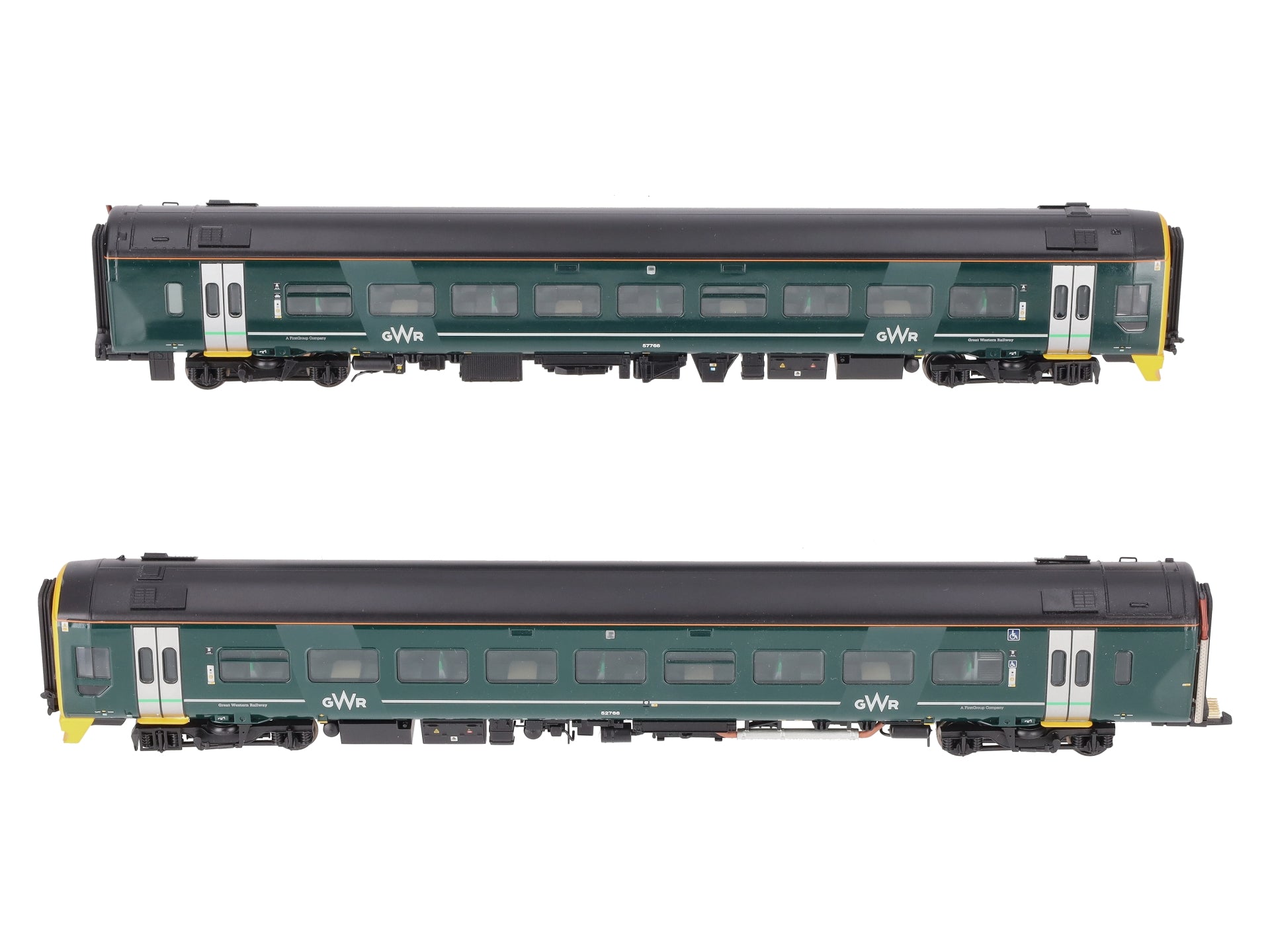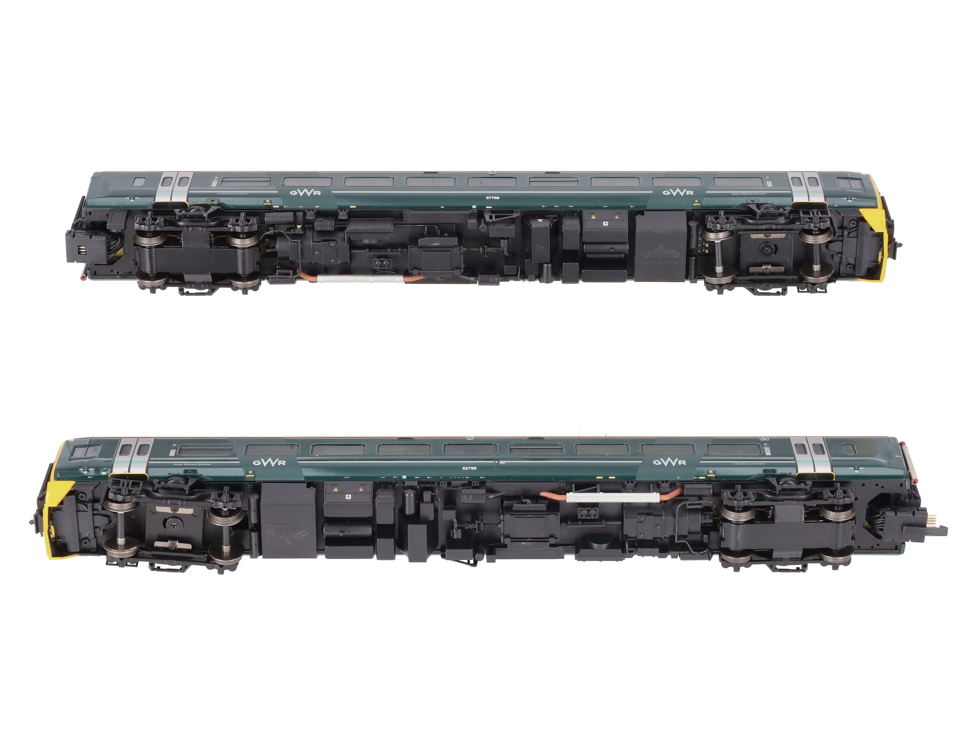 Here is a Bachmann 31-519 OO GWR Class 158 2-Car Set #158766. This set features one powered unit and one non-powered unit. This item features a plastic body construction with a motor in the powered unit, plastic trucks, metal wheels, and close couplers.