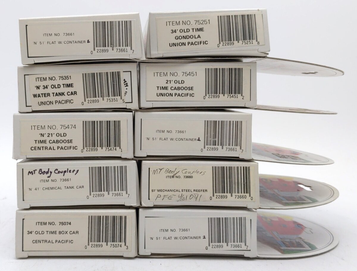 This is a lot of Bachmann N Scale Assorted Freight Cars [10]. These cars display a plastic construction.