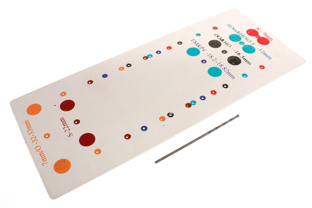 This is DCC Concepts TMB Template Pack W/Pilot Drill. Cobalt Turnout Motor Installation Template. This template is supplied complete with pilot drill, and will make accurate installation much easier in all scales from N to Gauge 1. (Usable with all Cobalt motor variants.)