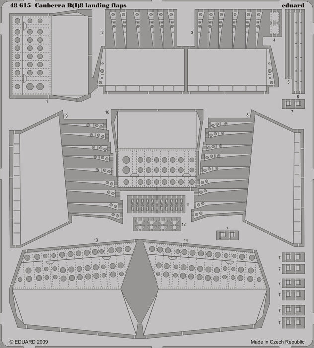 This is an Eduard 48615 1:48 Canberra B(I)8 Landing Flaps for Airfix Aircraft. This is recommended for Airfix Kit. Edition: Photo Etched Set, Products: Photo Etched Parts, Type: Aircraft, and Weight: 0.045 kg.