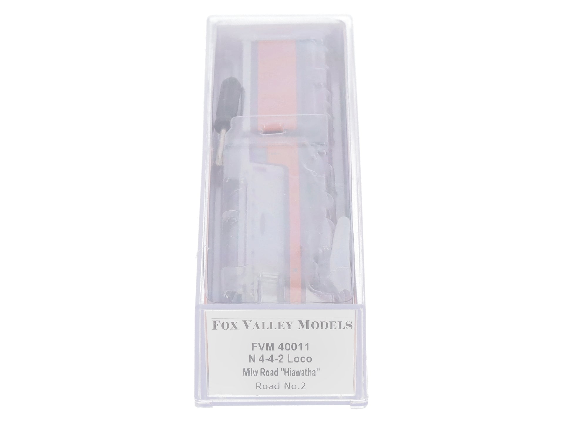 Here is a Fox Valley Models 40011 N MILW "Hiawatha" 4-4-2 Steam Locomotive & Tender #2. this locomotive and tender feature plastic body construction, a motor, a rear micro-trains coupler on tender, and metal wheels and axles.