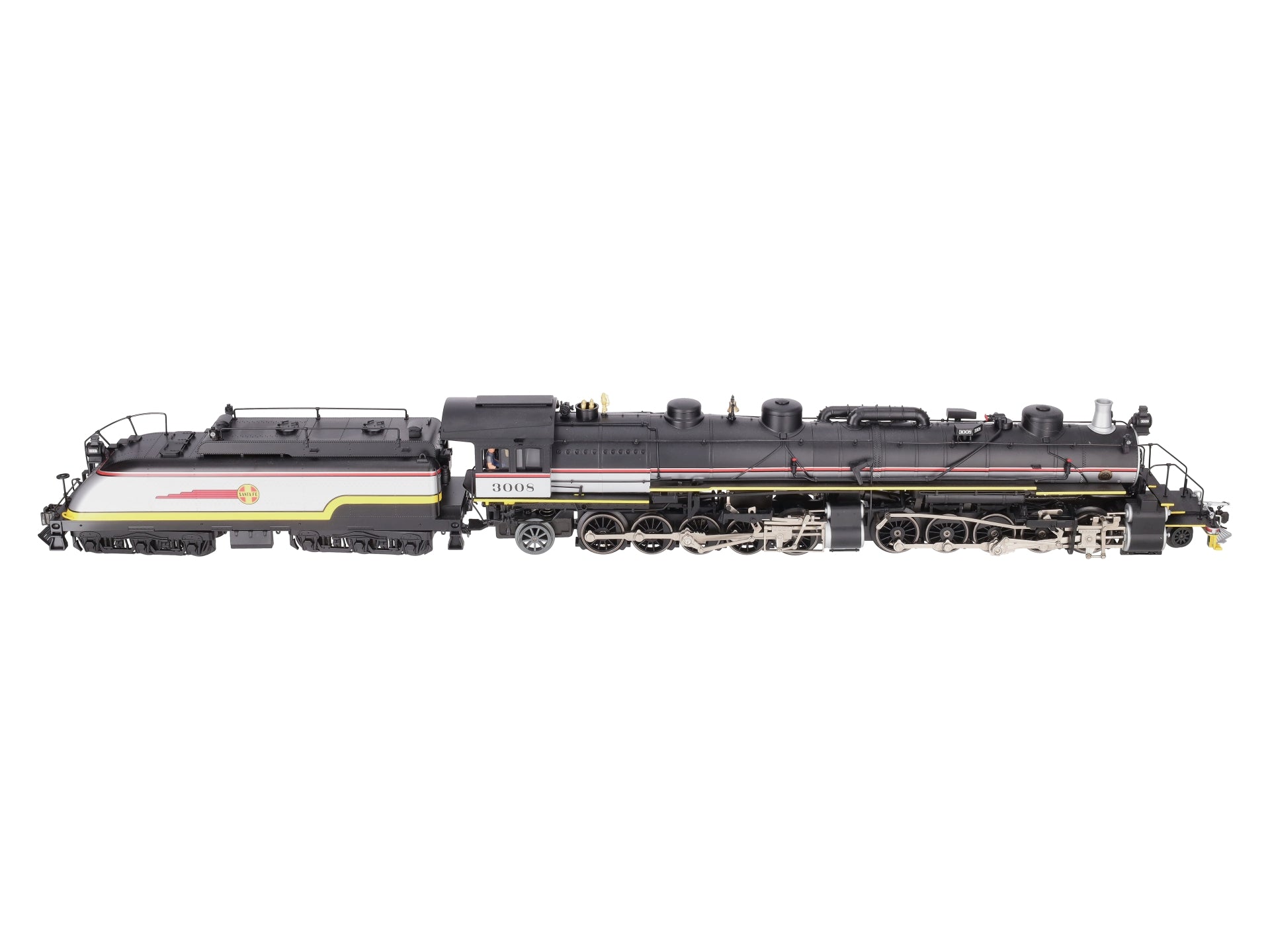 This is a Lionel 2131500 O Scale Santa Fe Vision 2-10-10-2 Steam Locomotive #3008. Features: LEGACY® Control System equipped – able to run in LEGACY® Control mode, in TrainMaster Command Control mode, or in Conventional mode with a standard transformer, Operate with Universal Remote or Bluetooth® Control via the Lionel LionChief App, Lionel Voice Control (LVC) - run your locomotive by speaking commands into your phone via LionChief App - available on select items – look for LVC logo, Odyssey® II Speed Control, IR Transmitter that works with LCS SensorTrack™, Powerful maintenance-free motor with momentum flywheel, Wireless Tether™ connection between locomotive and tender, ElectroCoupler™ on rear of tender, Directional lighting including operating headlight and back-up light on rear of tender, Bicolor illuminated classification lights on the front of locomotive where applicable. Using a Legacy controller, change the color of the classification lights between white or green, Traction tires, Interior illumination in cab, Die-cast metal locomotive body, pilot, and trucks, Die-cast metal tender body and trucks, High level of separately applied metal details, Separately applied builder's plate, Synchronized fan-driven smoke unit, Adjustable smoke output, Authentically detailed cab interior, Cab glass windows, Engineer and fireman figures, Whistle Steam, Blow Down Steam, Swinging Bell. LEGACY® RailSounds® sound system featuring: CrewTalk™ dialog with different scenarios depending on whether the locomotive is in motion or stopped, TrainSounds that mimic operating dialog when the locomotive is in motion or stopped, Six official railroad speeds with CrewTalk dialog, DynaChuff™ synchronized with 32 levels of intensity as the locomotive gains speed, LEGACY® Real-Time Quilling Whistle control with instant response for realistic signature quilling and correctly timed warning signals--5 different whistles to choose from for a more customized experience, Single hit or continuous mechanical bell sounds--5 levels of bell pitching for customized sounds, Sequence Control: plays the sound effects of an entire trip, including warning sounds and announcements, based on the movement and speed of the locomotive, Current speed and fuel dialog, coal or oil loading sound effects.