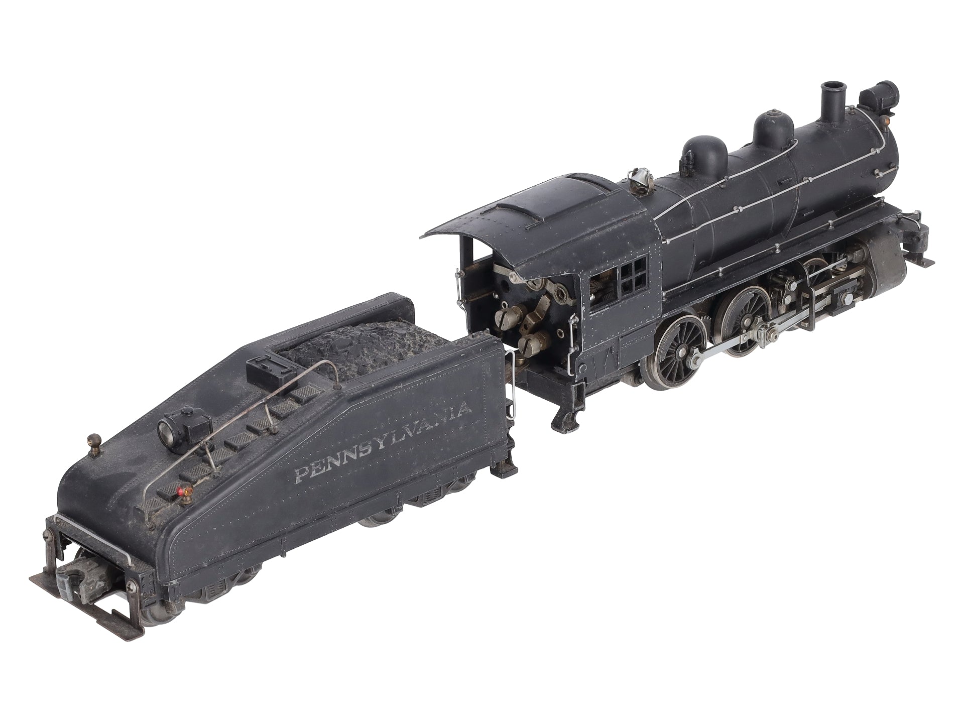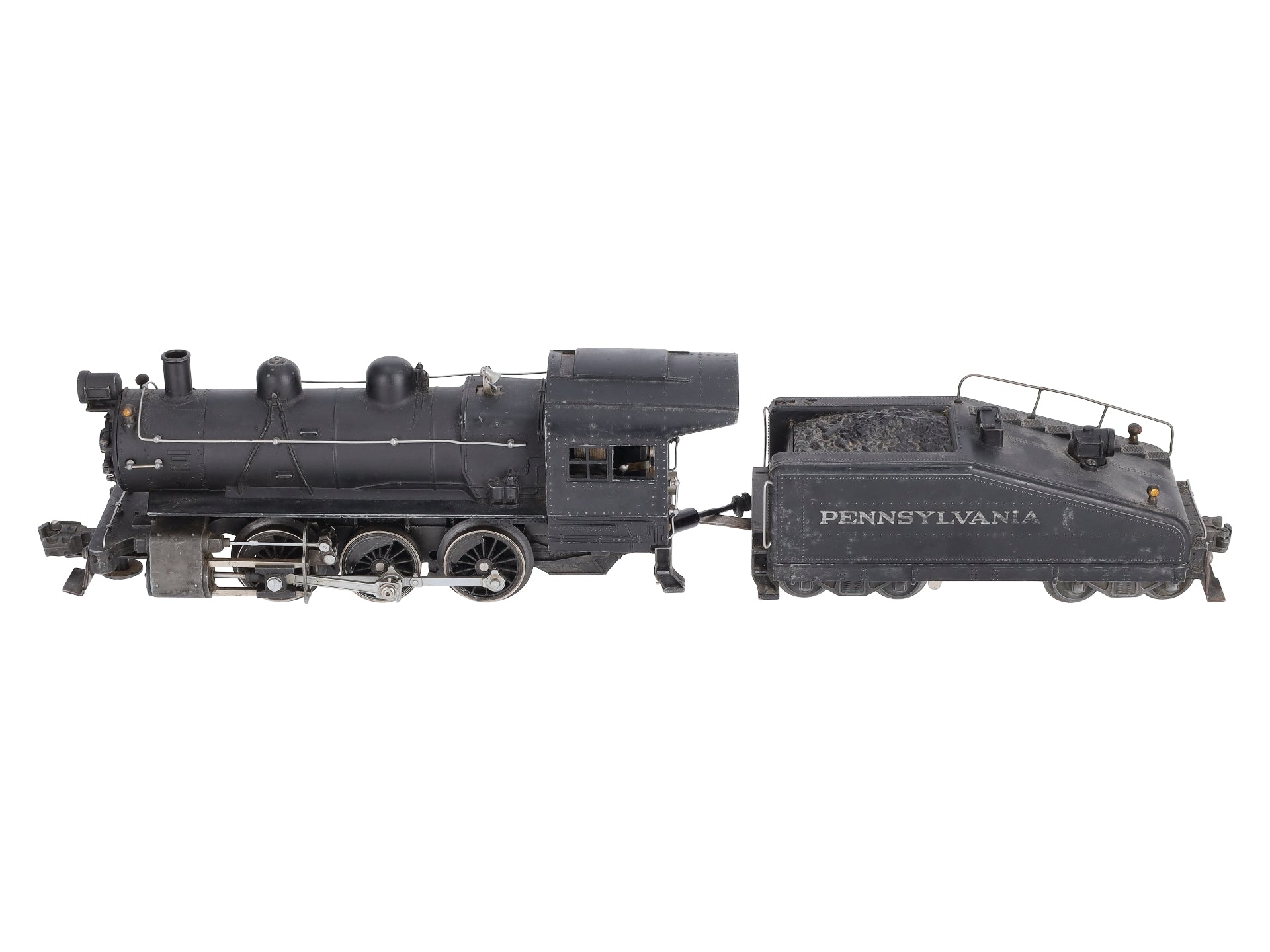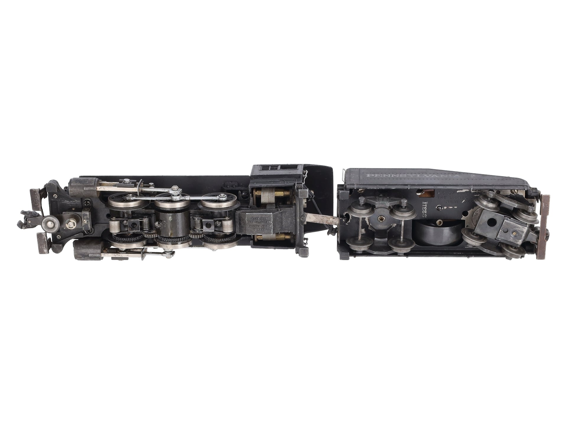 Here is a Lionel 231 Vintage O Pennsylvania RR 0-6-0 Steam Locomotive #8976 w/2231T Tender. This tender features die-cast metal sprung trucks, metal wheels and axles, and operating knuckle couplers. The locomotive is powered.