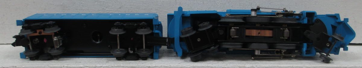 Here is an the Lionel 6-31701 Boy's Set. This set includes: (6-28621) Lionel Lines 2-6-4 Locomotive & Tender #2018 (6-39234) Missouri Pacific Box Car #3494-150 (6-26034) NYC Gondola W/ Canisters #6462 (6-29704) Pennsylvania Porthole Caboose #6427 (6-16462) Norfolk & Western Hopper #3456 One of the rarest of all PostWar train sets is this proposed companion to the notorious 1957 Lionel Girl's Train Set. Lionel's 1957 counterparts reasoned that if a Girl's Train was being produced headed by a pink engine, logically there must also be a Boy's Train led by the very same 2-6-4 locomotive, except in a bright blue "masculine" livery. In the end, the Boy's Train set program was cancelled before full production could begin. Very few (perhaps as few as three or four sets) of the original Lionel Boy's Train sets were ever made. Don't miss the first production run of this legendary set. Locomotives: Maintenance-free can motor One traction tire Die-cast body Operating headlight Puffing smoke unit Air whistle Magnetic coupler on tender Rolling Stock: Tender with die-cast metal trucks and metal frame 3494 boxcar with metal frame, door guides, and die-cast metal sprung trucks Gondola with die-cast metal sprung trucks and four canisters Hopper with die-cast metal sprung trucks Porthole caboose with die-cast metal trucks, metal frame, and interior lighting Total length of train 55" Minimum Radius: O-27