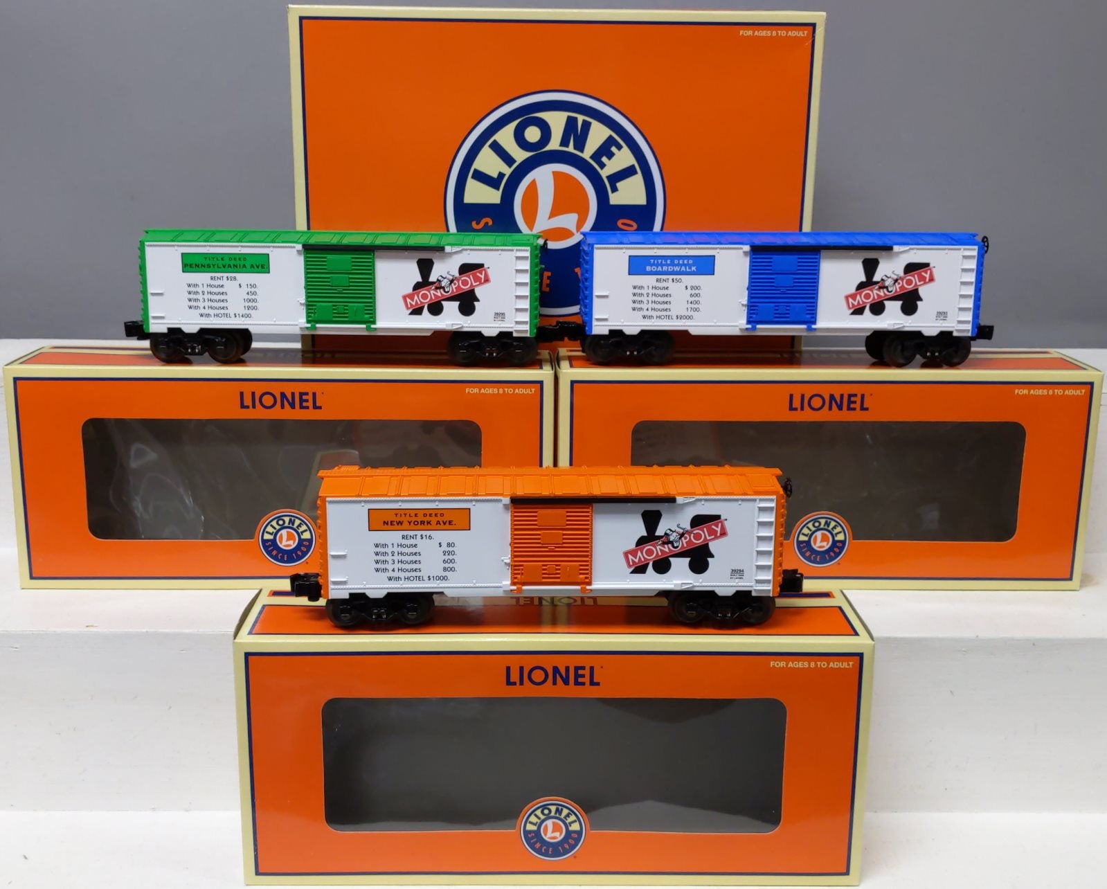 Lionel 6-39292 O Gauge Monopoly PA, NY Ave, Boardwalk Boxcars