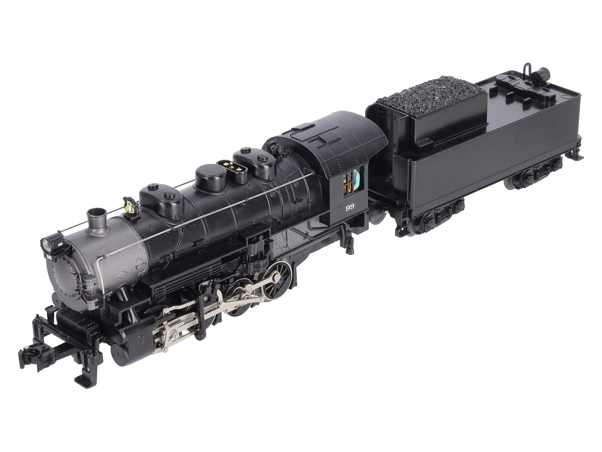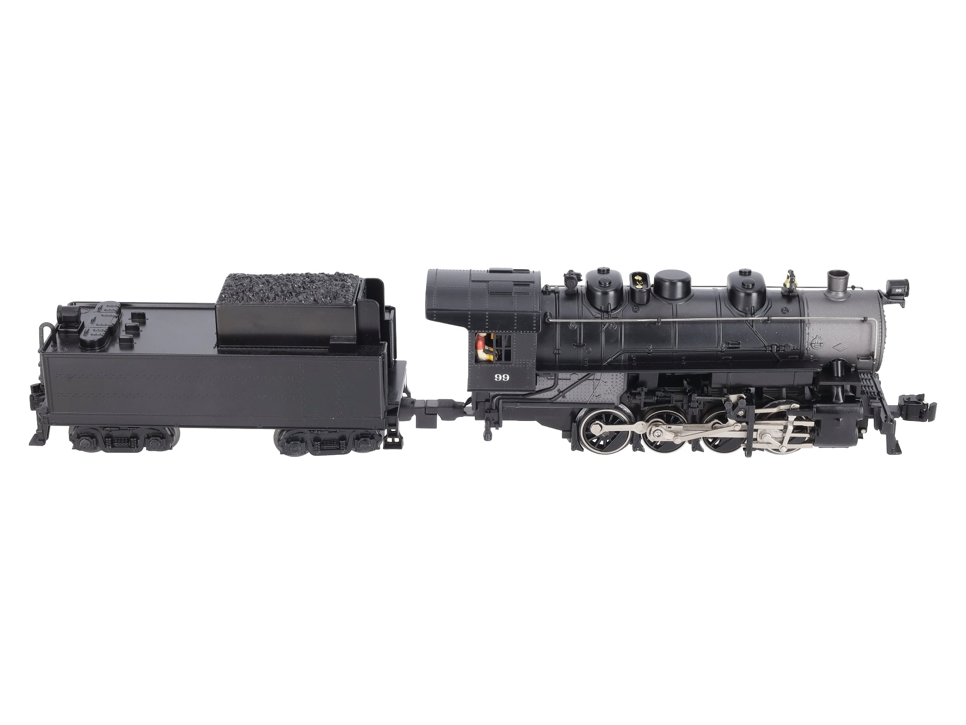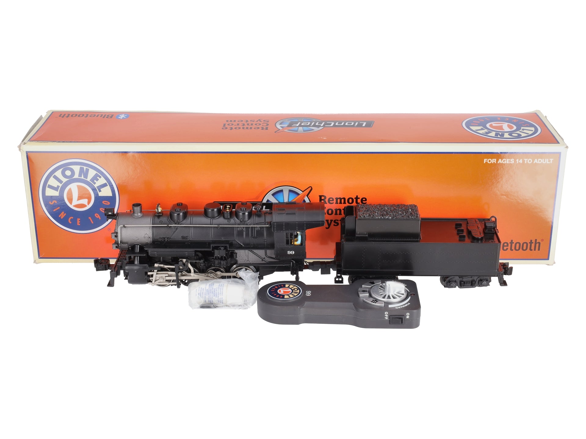 This is a Lionel 84809 O LionChief 0-8-0 Steam Locomotive #99. This locomotive features die-cast body construction, operating lighting, maintenance free motor, Bluetooth, Lionchief Remote Control System, and metal wheels and axles. The tender features plastic body construction, plastic trucks, rear operating knuckle couplers, and metal wheels and axles.