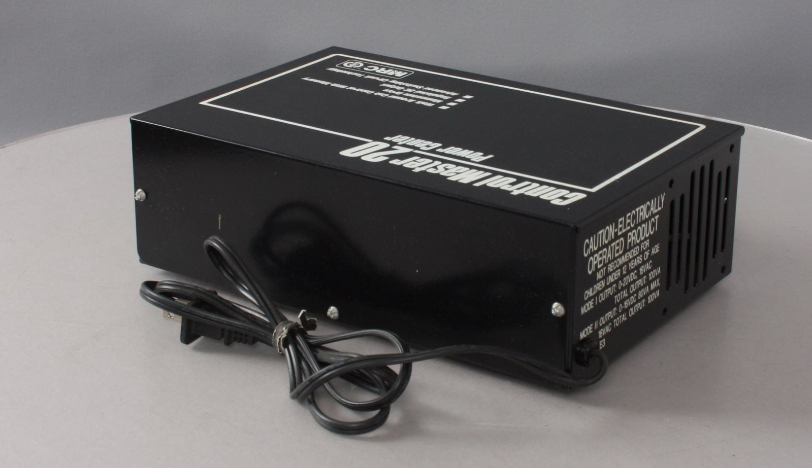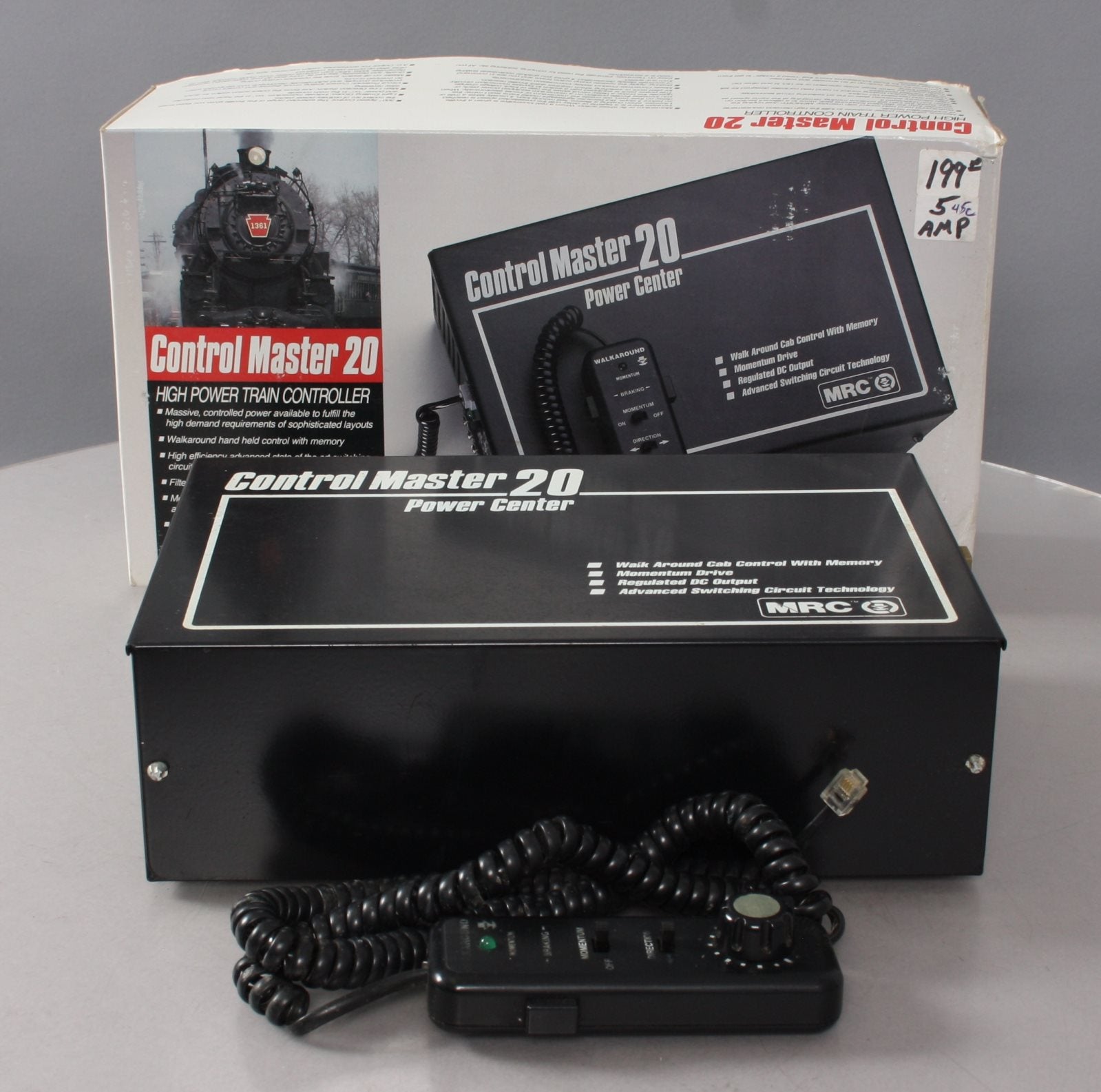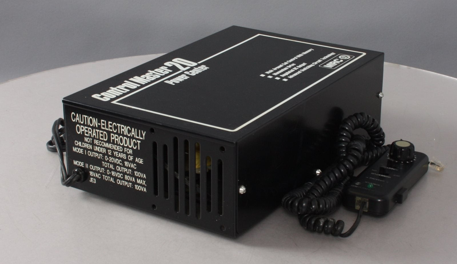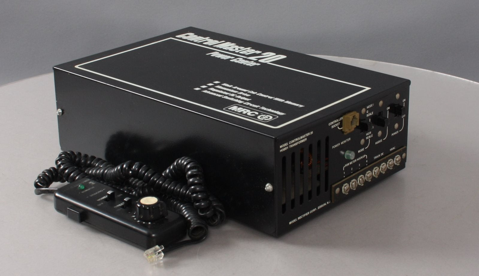 This is a MRC AA444 G Control Master 20 Power Supply 100VA. Runs HO, N, G and other large scale DC Trains. The steady power of flat line DC treats even your most sensitive motors with kid gloves. Keeps them running cool while it gives you maximum power. Voltage regulation helps your locos climb steep grades and sail around curves with virtually no hesitation. Features for this unit include: Memory keeps the train moving when you unplug the handheld throttle to move to another location, Mode switch setting for high output voltage needed for G gauge, Momentum control switch, Direction control switch, Walk-around with 15’ coil cable, Pump-action brake, Nudge switch for smooth, even starts, and a 5-year limited warranty.