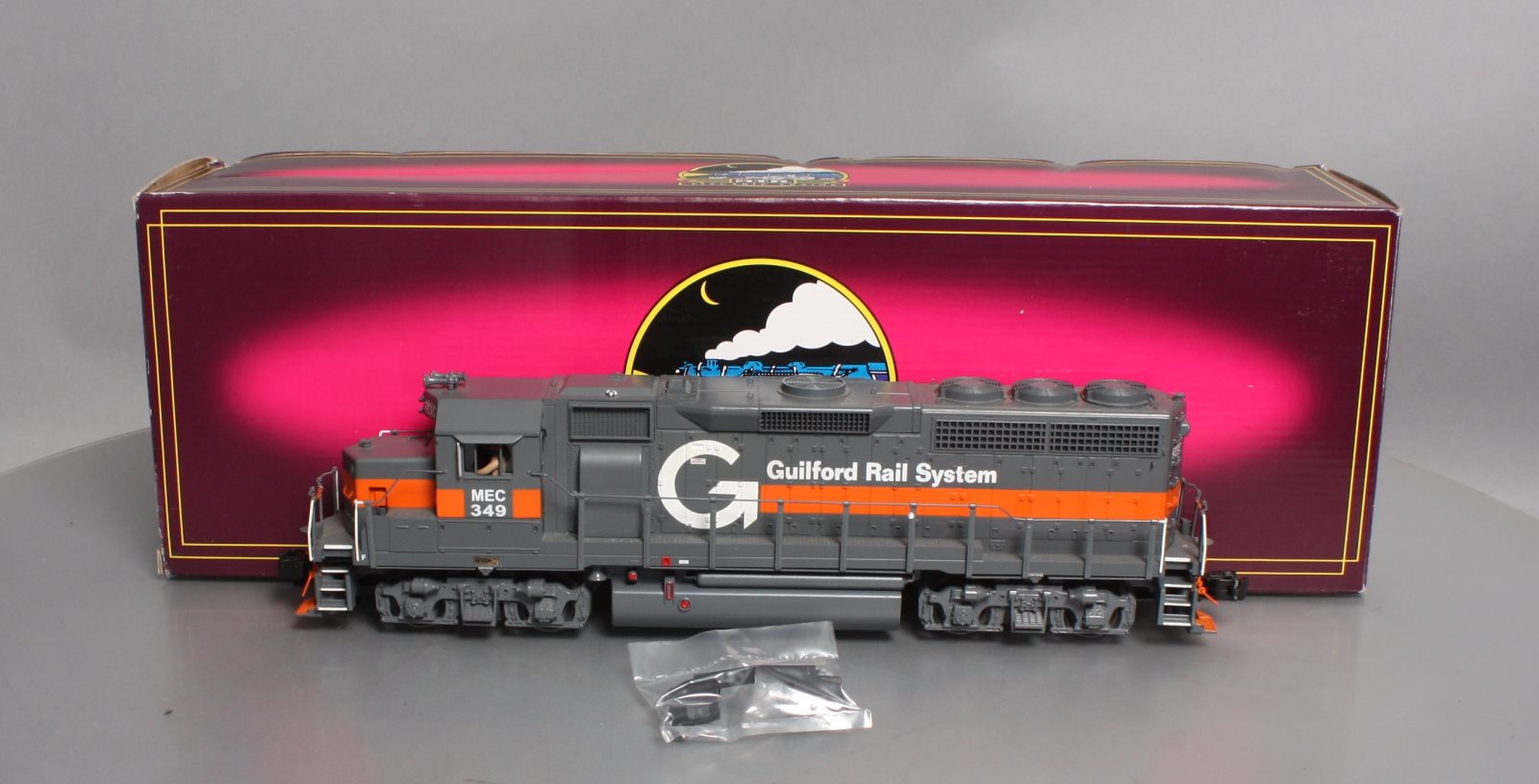 Here is a MTH 20-20079-3 GP-40 DIESEL ENGINE (NON-POWER MASS BAY). Features of this item include a Metal Chassis, Metal Handrails and Decorative Horn, Intricately Detailed ABS Body, (2) Operating Metal Kniuckle Couplers, Authentic Paint Scheme, (2) Cab Figures, Metal Wheels and Axles, Moveable Roof Fan Blades, Illuminated Number Boards, Constant Voltage Headlight, 1:48 Scale Proportion, Unit Measures:15 1/2 x 2 3/4 x 4, Operates On O-31 Curve