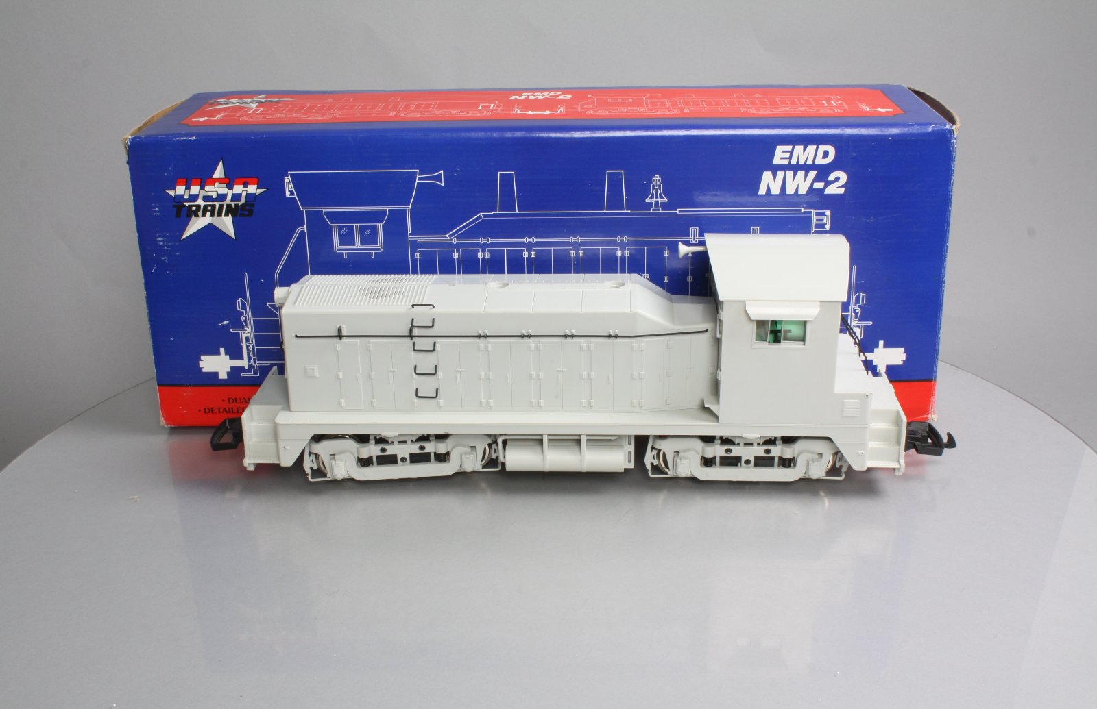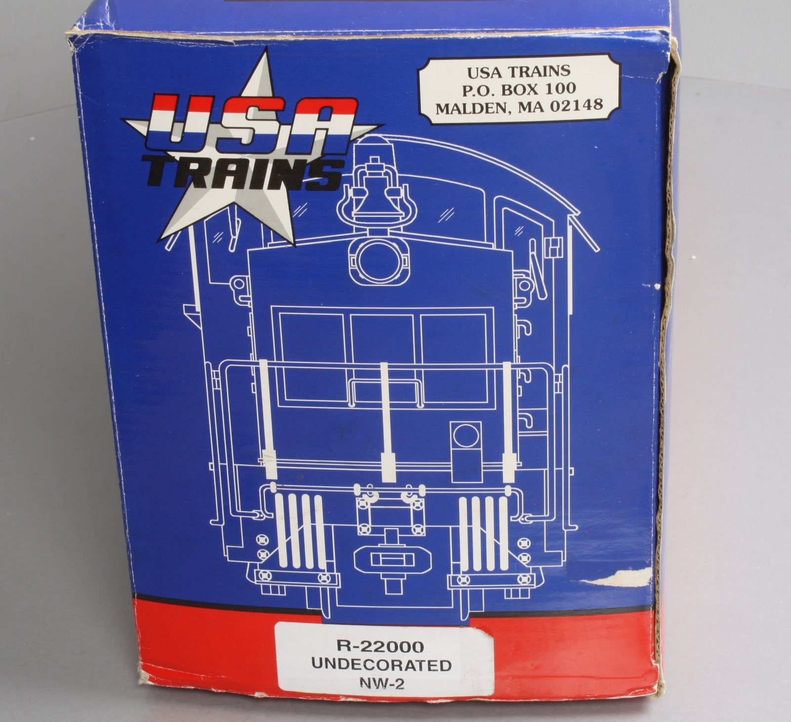This is a USA Trains 22000 G Undecorated NW2 Diesel Locomotive Powered Cow Unit. Keep the cars moving through your yards with a fleet of these switchers on the job. Engines are nicely detailed with working smoke stacks, metal handrails, lights and a detailed cab interior. Each model comes fully assembled and finished in authentic colors.