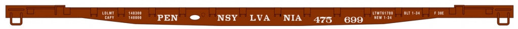 This is a Walthers 910-5134 HO Scale Pennsylvania Railroad 53' GSC Piggyback Service Flatcar - Ready to Run #475699 (Tuscan, Early Hitch). It Features: Limited Edition - One Time Run of These Roadnumbers!, Used for Piggyback Service 1955-80s, Carried 32', 35' and 40' Trailers, Factory-Installed Original Style Trailer Hitch, Rub Rails & Bridge Plates, Detailed Body & Deck, Hidden Weight for Great Looks & Performance, Correct 33 Turned-Metal Wheelsets and Proto MAX(TM) Metal Knuckle Couplers.