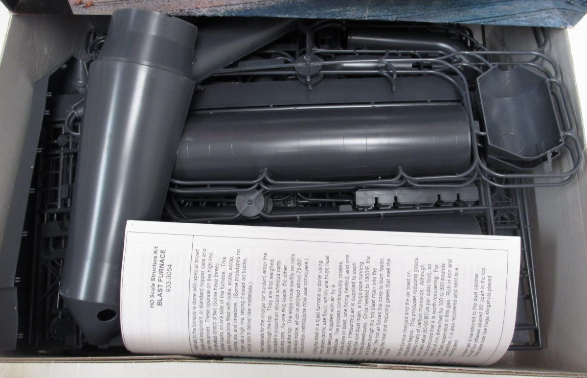 Features include: complete instructions, fits steam or diesel era, U.S. Steel Decals, gas washers, high line and skip hoist, three stoves and smokestack, complete cast house, authentic top platform, over 400 detailed plastic parts, and easy to build HO scale. 28 x 14 x 21-1/2" 70 x 35 x 53.7cm