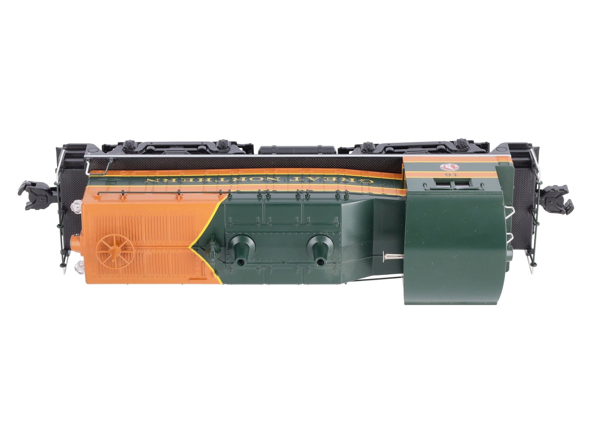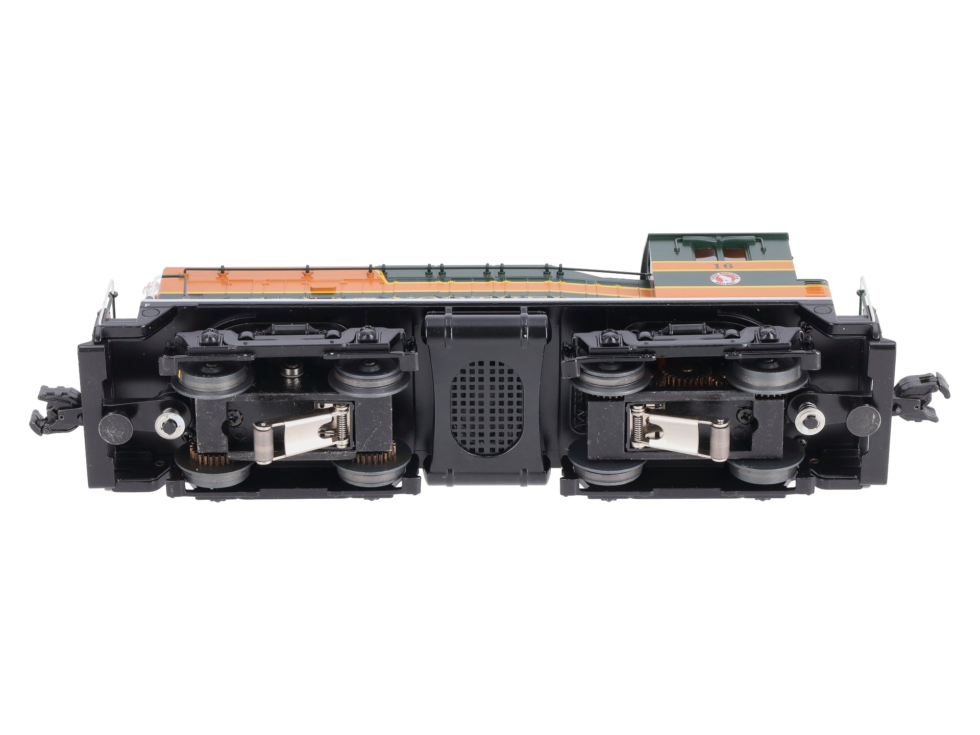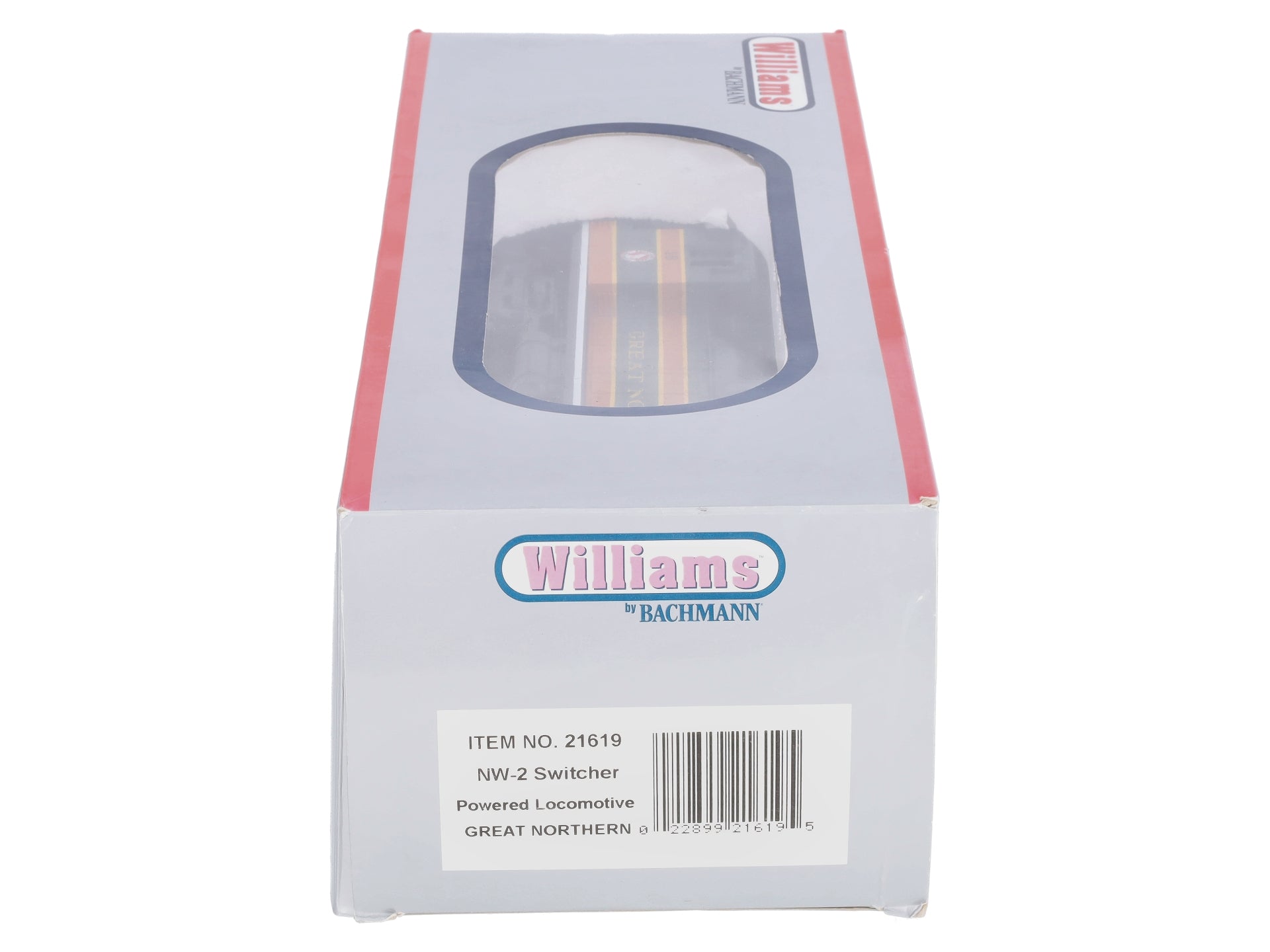Here is a Williams 21619 O Great Northern EMD NW2 Diesel Locomotive. In 1939, GM's EMD division introduced two switcher locomotives, the NW-2 and its smaller sibling the SW-1. The NW-2 was equipped with a 1000 H.P. twelve cylinder engine. It was GM's most popular switcher of all time, with over 1100 units sold. The last unit was manufactured in December of 1949. Many railroads and shortlines have rebuilt these units due to their flexibility and reliability. Its key features are: navigates 0-27 curves, the length is 12 and the height is 4. It has 4 wheel trucks with traction tires, powered by dual motors, flywheel coasting action, all metal gears and wheels. Electronic 6-amp reverse board, True Blast II™ digital horn and bell, durable ABS plastic shell, die-cast trucks, truck sides, and frame. Dual headlights, die-cast operating couplers and wire handrails.