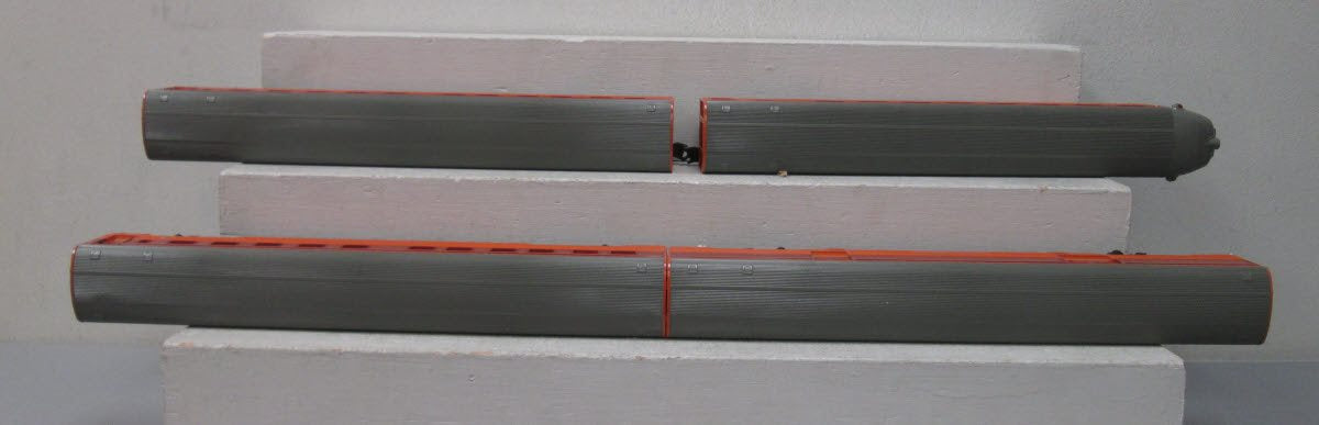 Here is a Williams 43170 O Gauge Milwaukee Road 72' Streamliner 4-Car Passenger Set. This 4-Car set includes 1 baggage car, 2 coaches, and 1 observation car. Features include navigates 0-42 curves, single-car length: 18, durable/lightweight ABS plastic shell, oil impregnated bearings, passenger silhouettes, dual roller pick-ups, operating couplers, needlepoint axles, interior lighting, and it is Lionel compatible.
